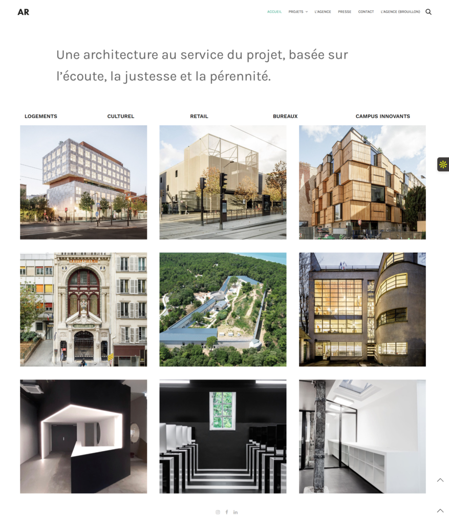 Audit et stratégie globale de communication, définition et rédaction de la nouvelle identité de marque de l’agence, conseil et stratégie sur la réponse à des prix d’architecture, optimisation graphique et fonctionnelle du site web de l’agence, mise en place d’une stratégie de contenu sur LinkedIn.