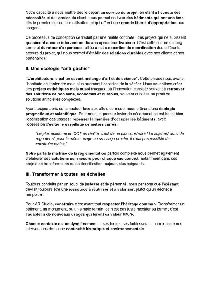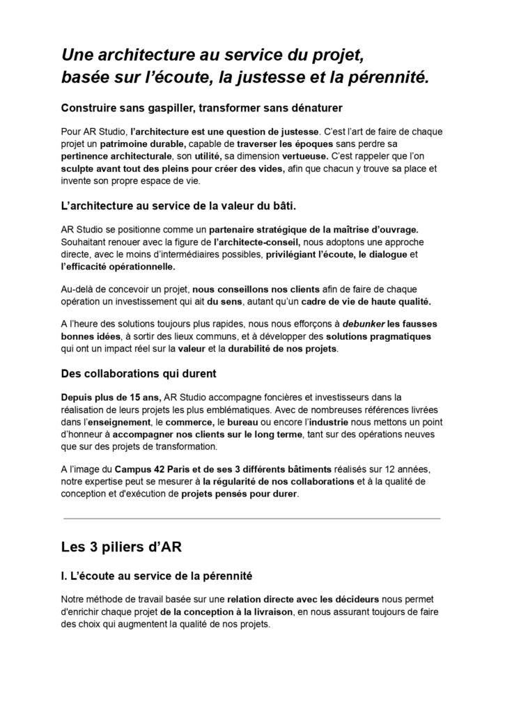 Mission d’accompagnement stratégique de l’agence d’architecture parisienne AR Studio.