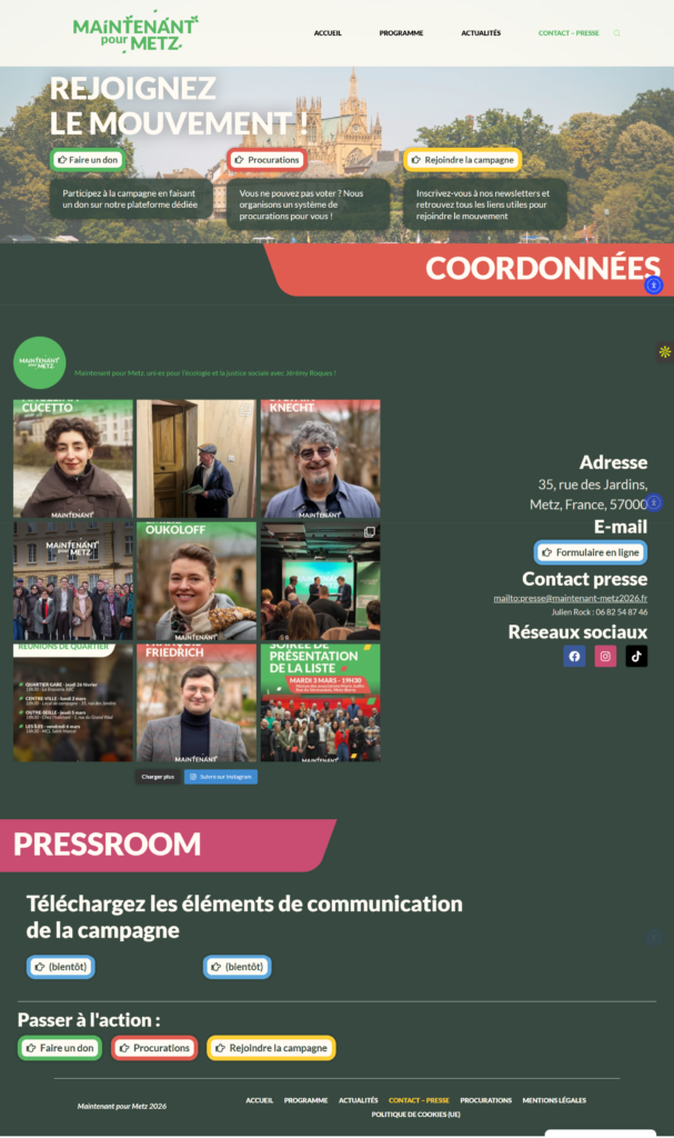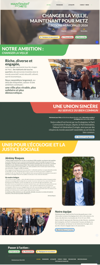 Réalisation d’un site web WordPress pour la liste Maintenant pour Metz dans le cadre des élections municipales 2026.